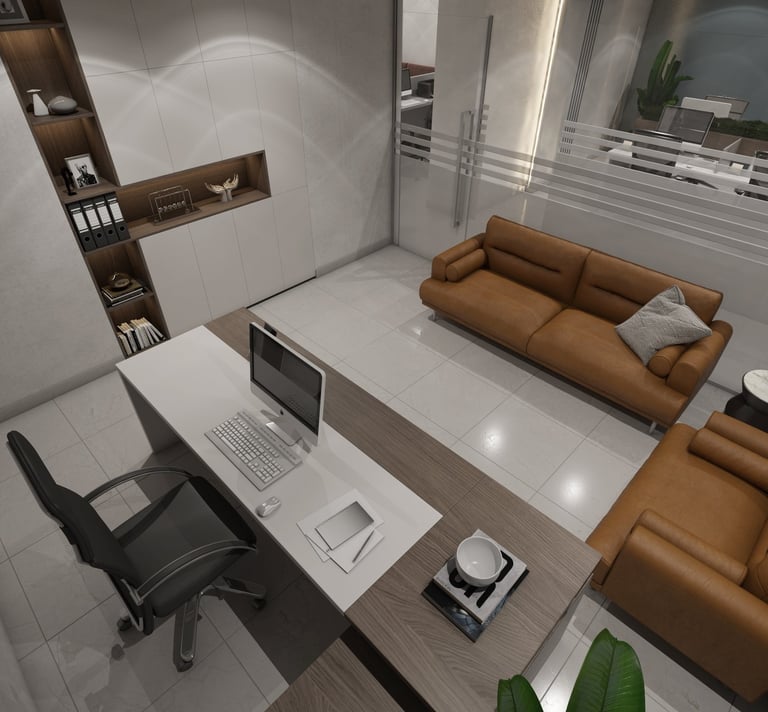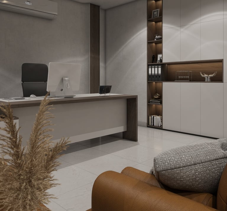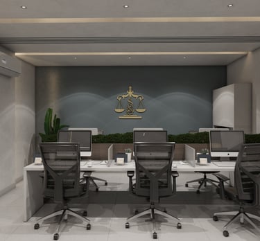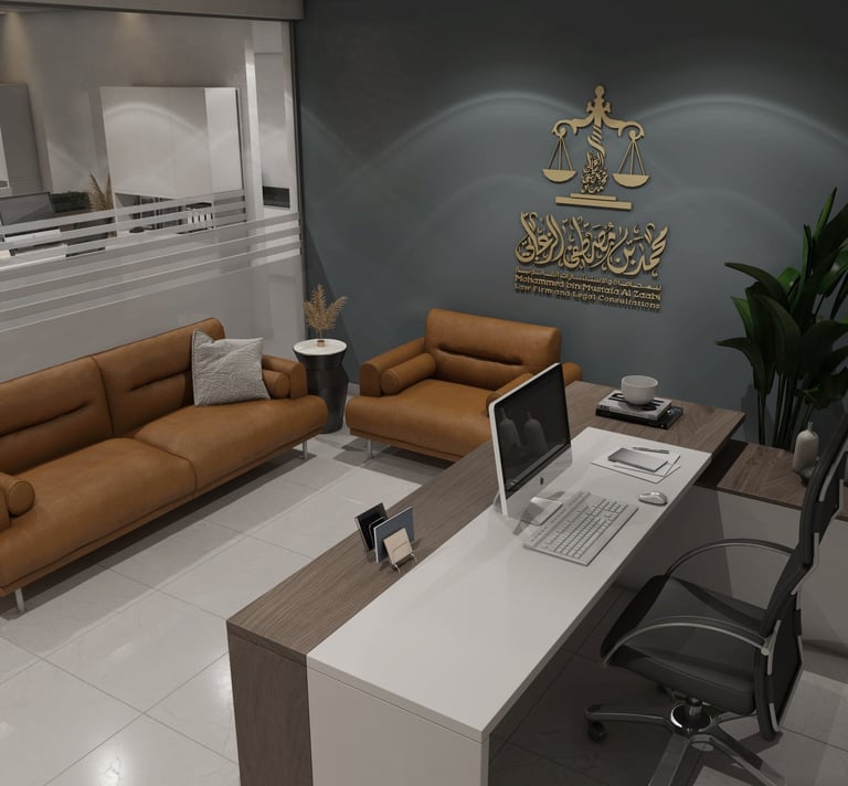 A sophisticated workspace for Mohammed bin Mustafa Al Zaabi Law Firm, blending professional authority with modern luxury.